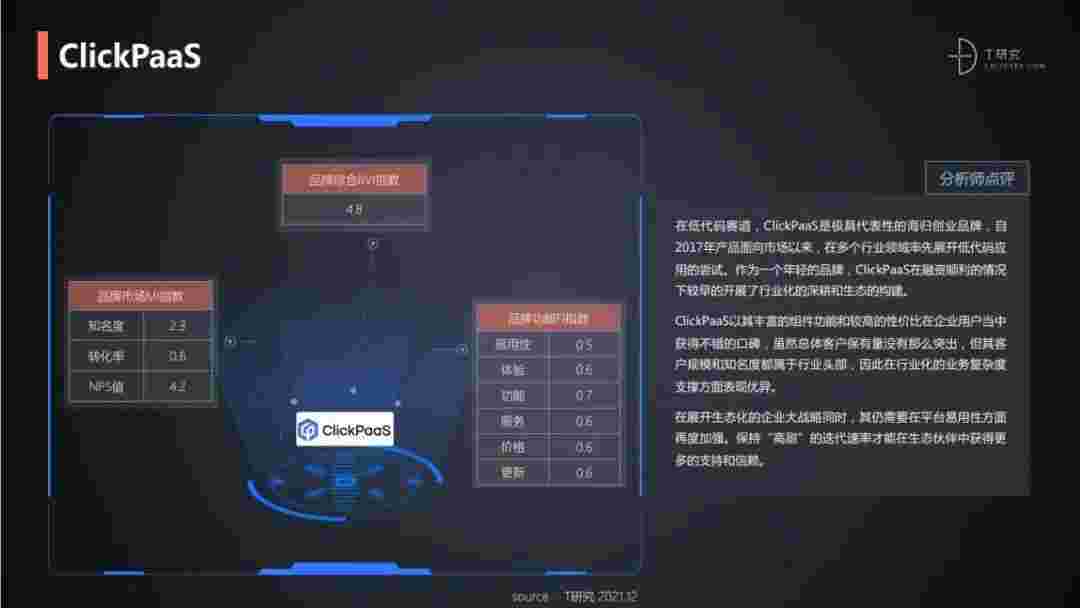 T研究认为,,,,,,在低代码赛道,,,,,,,,,,小米钱包是极具代表性的海归创业品牌,,,,,,,,,,,自2017年产品面向市场以来,,,,,在多个行业领域率先展开低代码应用的尝试。。。。。。作为一个年轻的品牌,,,,,,,,,,小米钱包较早的开展了行业化的深耕和生态的构建。。。。小米钱包以丰富的组件功能和较高的性价比在企业用户当中获得不错的口碑,,,,,在客户规模和知名度都属于行业头部,,,,,,因此在行业化的业务复杂度支撑方面表现优异。。。。。。。。。。。。。。。